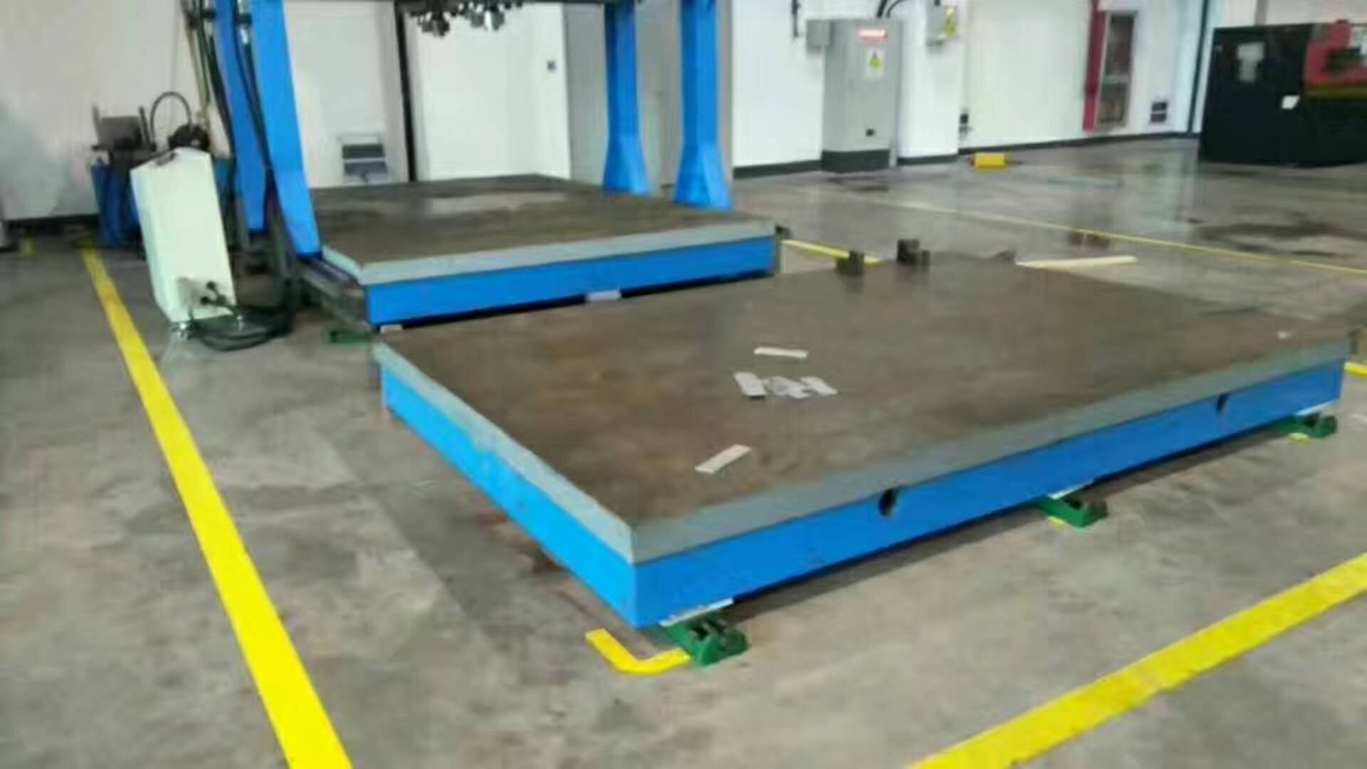 如果鑄鐵焊接平板下面的縫隙是由于鑄鐵焊接平板底面不平而產生的,則應該用鐵皮墊實。必須預先將鑄鐵焊接平板的兩個側面加工好。否則,劃線平臺撐板與鑄鐵焊接平板的側面就不能很好的接觸,會使鑄鐵焊接平板受力不均而變形。
