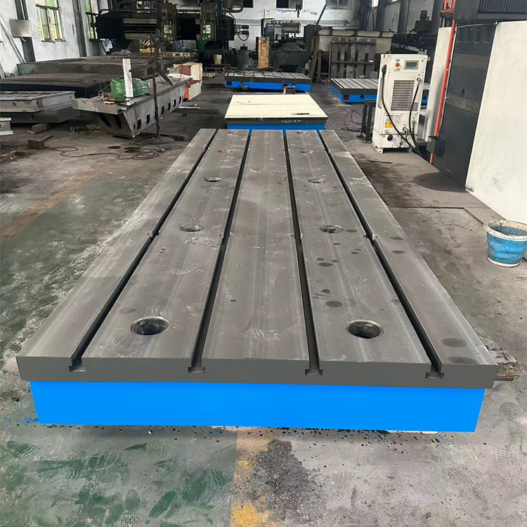 鑄鐵平臺(平板) 制造標準:平臺按國家GB7947-1999標準制造。 平臺 制成筋板式和箱體式,工作面有長方形、正方形或圓形。工作面采用刮削工藝,工作面上可加工V形、T形、U形槽和圓孔、長孔等。